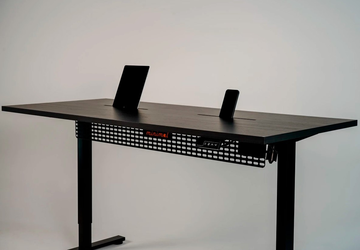 Sim, ele está disponível em todas as mesas da linha Minimal. Essa integração garante uma experiência prática e estilosa, otimizando o uso e o carregamento dos seus aparelhos eletrônicos em qualquer ambiente.