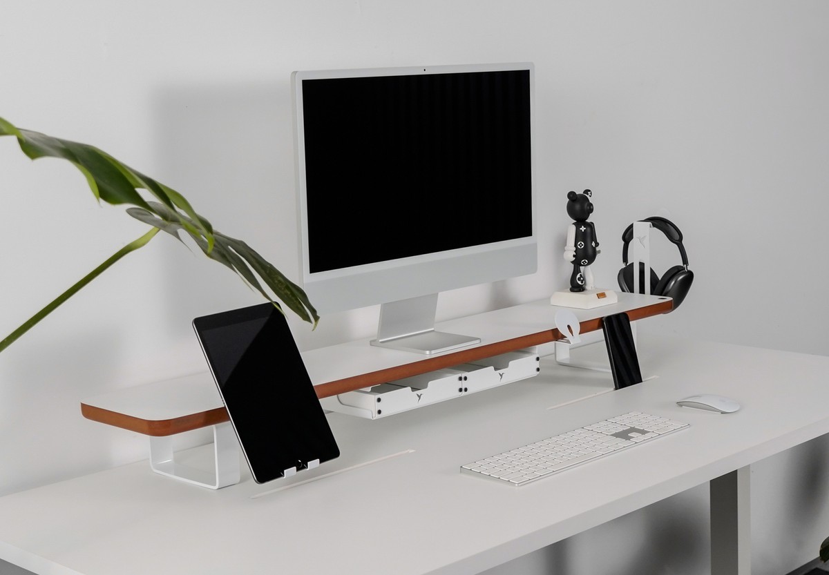Estante Modular Suporte de Monitor Stand Minimal Pro 100x22 Branco\madeira